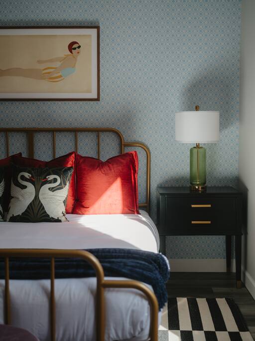 Silver Reel Retreat (Sophisticated • Glamorous • Designed for Relaxation & Connection) Old Hollywood Glamour | 4BR | 3BA | Chic Movie Room | Sleeps 10 Step into a world of timeless elegance at Silver Reel Retreat, a beautifully curated 4-bedroom, 3-bathroom luxury condo where vintage Hollywood charm meets modern comfort. Nestled in a scenic setting and designed with impeccable taste, this sophisticated two-story retreat is perfect for families, couples, or groups seeking style, comfort, and a touch of cinematic magic. Please note: The unit is located on the second floor, and guests will need to climb one flight of stairs to access the entry. Located near scenic rocks and outdoor trails, this brand-new home features: Main Level (One Flight Up from Entry): -3 beautifully appointed bedrooms (1 king & 2 queens) -2 full bathrooms Upper Level: -1 bedroom (2 twins) -1 full bathroom -A stunning movie room with a queen-size daybed — perfect for relaxing or additional guests -Get Ready Station Each bedroom is uniquely styled with plush linens, high-end touches, and smart TVs for private entertainment. Bedrooms for Everyone: -King Suite w/ ensuite -2 Queen rooms -Bedroom with 2 twins + kid-friendly -play corner -Queen size bed in movie room -Smart TVs in every room The Silver Screen Experience – Movie Room: -A luxurious queen-size daybed -Velvet textures & ambient lighting -Smart TV for streaming your favorite films -Cozy throws, plush seating, and cinematic charm throughout *This space is ideal for a relaxed movie night, an afternoon nap, or even an additional sleeping space. Fully Stocked Kitchen: -Seating for 10 (island seating & dining table) -Cooking & Baking Essentials -Full set of pots and pans (various sizes) -Non-stick frying pans and saucepans -Baking sheets, loaf, muffin & pizza pan, casserole dish -Mixing bowls -Measuring cups and spoons -Cutting boards -Chef’s knives and steak knives -Colander/strainer -Can opener, peeler -Whisk, tongs, spatula, ladle, slotted spoon -Oven mitts Stainless Steel Appliances: -Full-size refrigerator with freezer -Electric stove and oven -Microwave -Dishwasher -Ninja Blender -Toaster/Air Fryer -Electric kettle -Immersion blender Coffee makers: -Coffee station (Cuisinart drip coffee, single serve pod or iced coffee machine) -French press -Coffee grinder -Coffee pods, ground coffee & filters provided Tableware & Serveware: -Plates, bowls, glasses (serves 10+) -Mugs and wine glasses -Kid-friendly dishes and cups -Serving platters and large serving bowls -Pitcher Pantry Essentials: -Cooking oil (olive and/or vegetable) -Salt & pepper -Sugar -Paper towels and napkins -Dish soap and dishwasher pods -Trash bags and cleaning supplies Bonus Items: -Aluminum foil, ziplock bags -Reusable food storage containers -Ice trays -Bottle opener, corkscrew Private Balcony + Community Amenities -Stunning rock views -Access to seasonal pool, BBQ grills, & outdoor seating 🎁 Extras You’ll Love -High-speed Wi-Fi -In-unit washer & dryer -Central heating & air conditioning -Self check-in via smart lock -Smart TVs in every room -Outdoor parking -Pack ‘n Play & high chair for families -2 kids life vest for pool -Beach towels 🚭 No smoking indoors 🐾 No pets allowed (to maintain an allergy-friendly environment) Whether you’re enjoying a cozy movie night in the glamorous upstairs lounge, sipping coffee on the balcony, or exploring the scenic trails and charming town nearby, Silver Reel Retreat delivers a one-of-a-kind experience filled with style, sophistication, and cinematic flair. You’ll also find a thoughtfully designed get-ready station with a mirror and extra lighting — ideal for pre-dinner touch-ups, themed movie-night transformations, or simply getting camera-ready for those picture-perfect vacation moments. We have a second 4-bedroom, 3-bath condo located directly across the hall on the same floor. Together, both units can comfortably accommodate up to 20 guests — perfect for family reunions, group retreats, or multi-family vacations. Please inquire if you’re interested in booking both condos together. ➡️ Book now and make memories in style. Note: We require all guests to sign the rental agreement at least 72 hours before check-in.